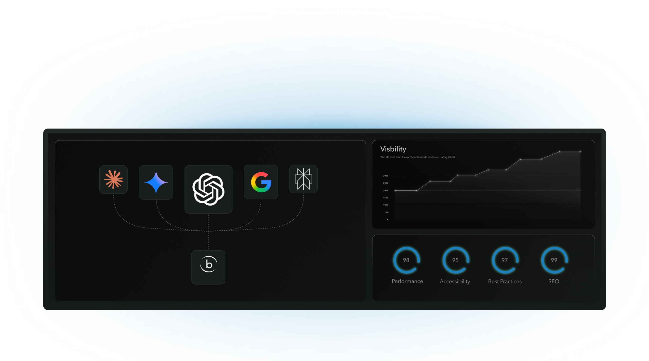 Unsere SEO Experten sorgen dafür, dass dein Unternehmen sowohl in Google als auch in KI-Antworten erwähnt, zitiert und gefunden wird – mit modernsten Methoden der Suchmaschinenoptimierung.